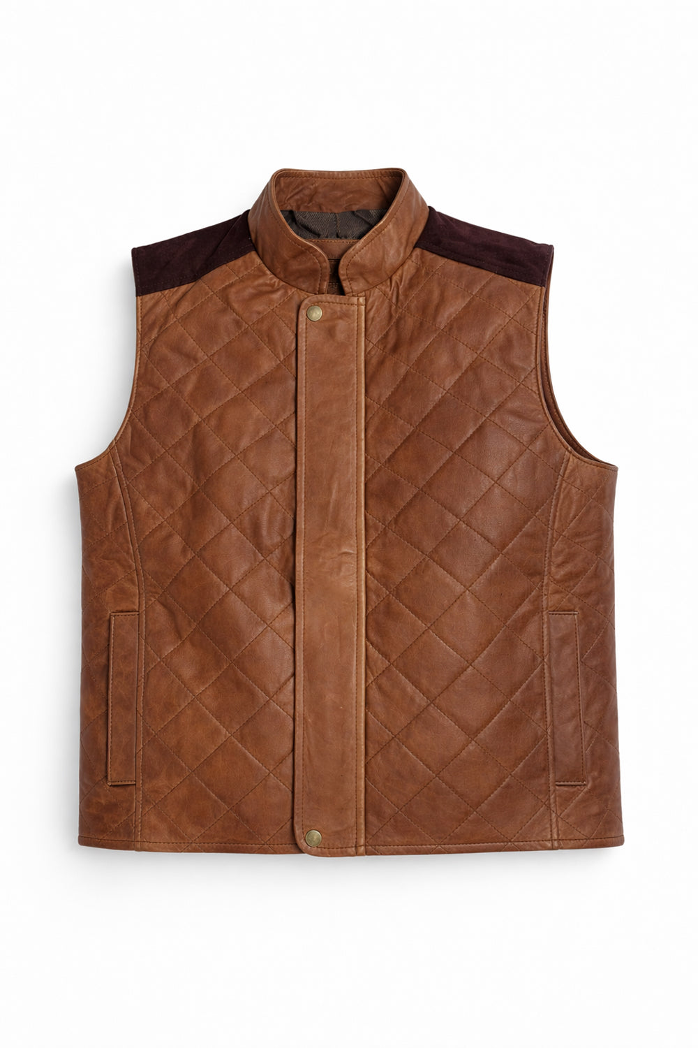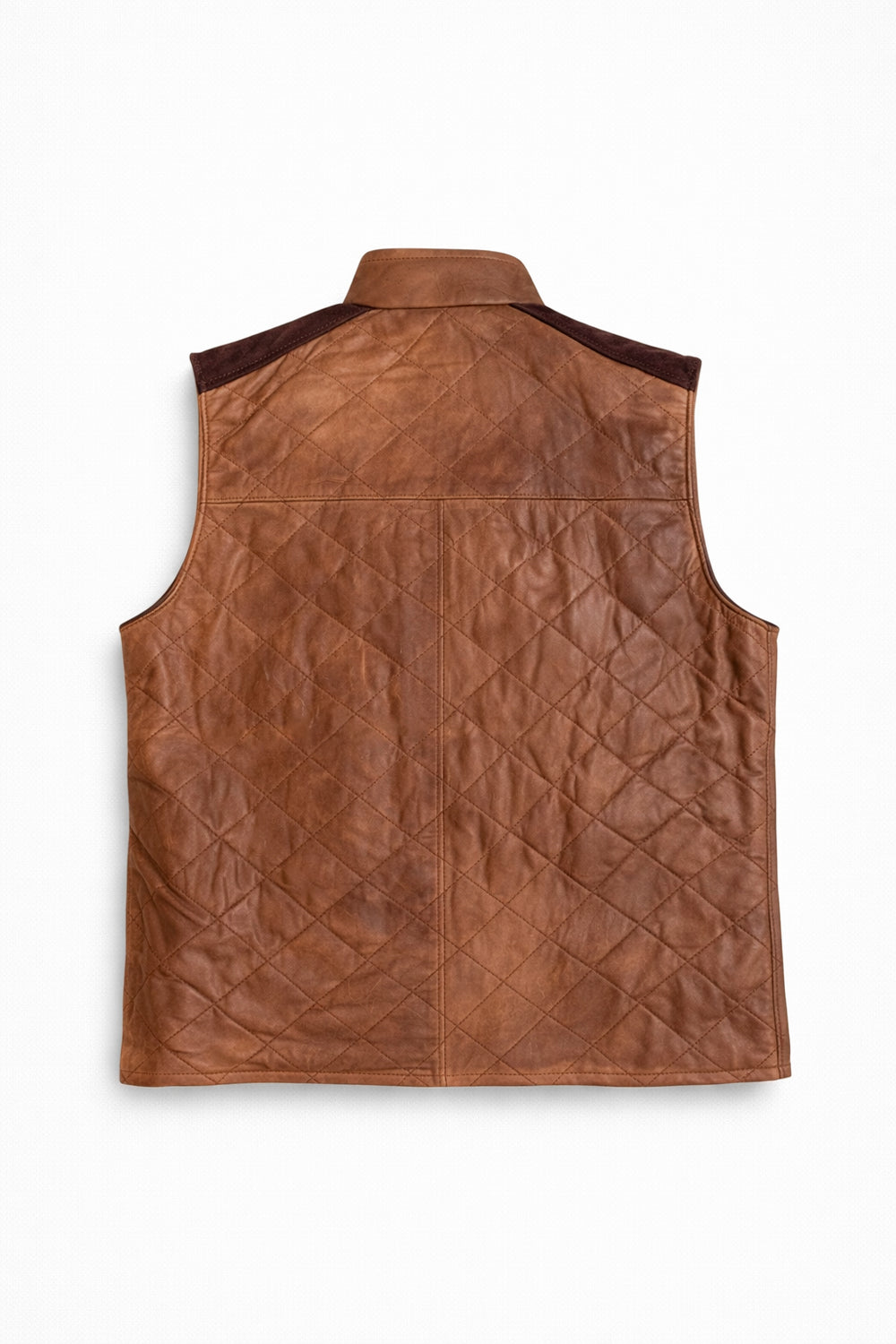Chaleco de piel genuina para caballero que combina elegancia y funcionalidad. Presenta un distintivo diseño de rombos que añade textura visual, mientras que las hombreras estructuradas definen la silueta. El acabado en gamuza proporciona un tacto suave y un aspecto refinado. Cuenta con botón y cierre seguro para un ajuste cómodo. Confeccionado en cuero de calidad superior, este chaleco es versátil para ocasiones formales o looks casuales sofisticados. Una pieza de inversión que trasciende tendencias.