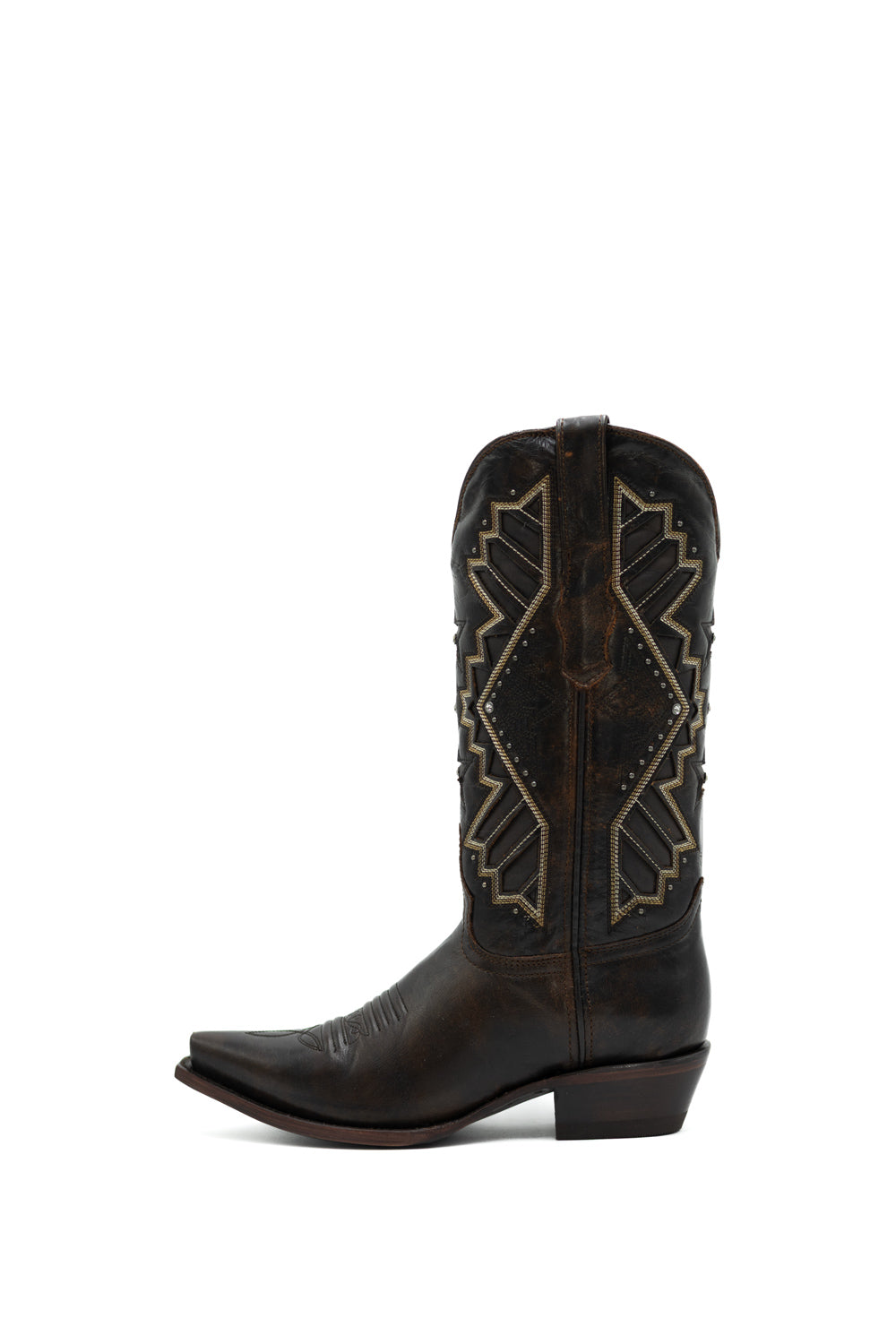 Bota vaquera artesanal elaborada con acabados distintivos de estoperol y piedra. Confeccionada en México con piel genuina y suela de cuero, garantiza durabilidad y autenticidad. Su diseño retro combina comodidad excepcional con estilo vaquero clásico.
