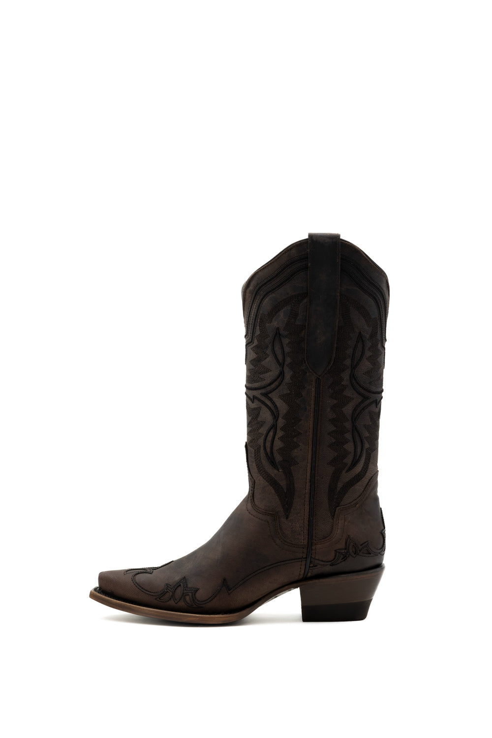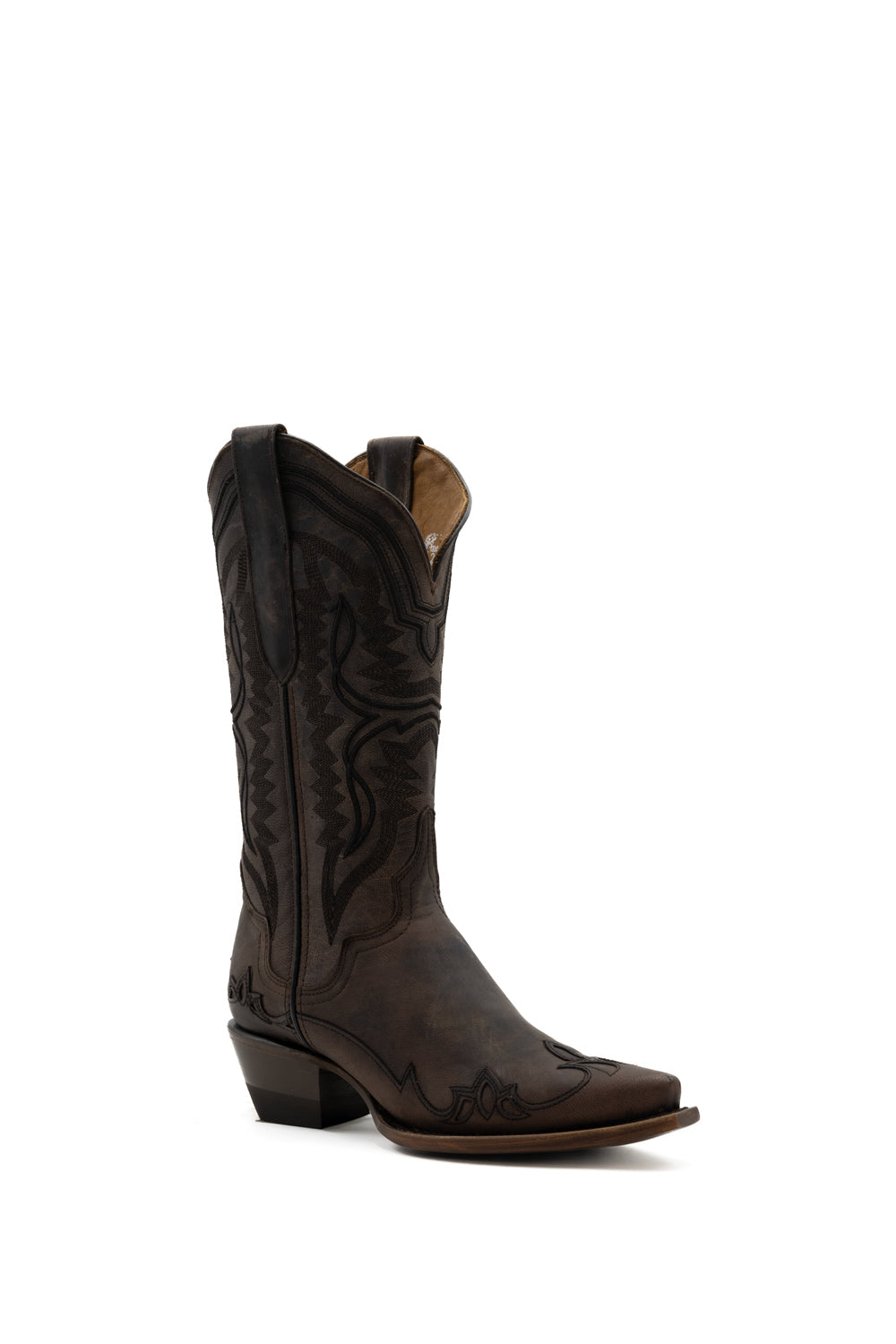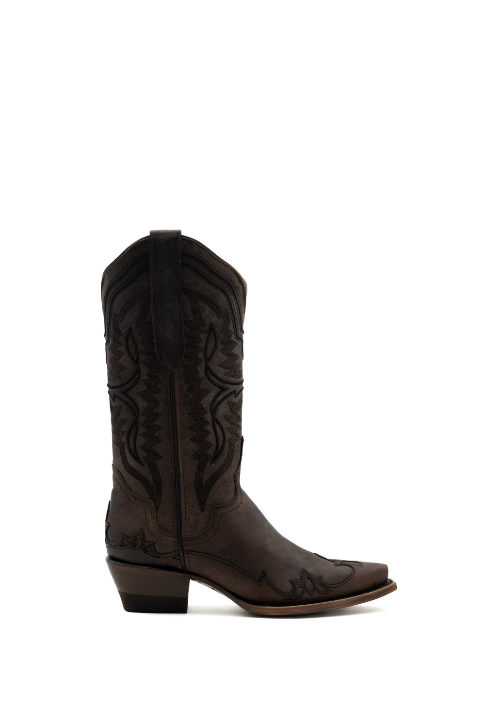 Bota vaquera de piel genuina de res en tono chocolate, confeccionada artesanalmente en México. Diseño clásico con bordados al tono que realzan su elegancia. Horma puntal y suela de cuero auténtico proporcionan comodidad y durabilidad. Tacón de 4 cm que define la silueta. Pieza versátil que combina tradición occidental con sofisticación contemporánea, ideal para quien aprecia la calidad y el trabajo artesanal.